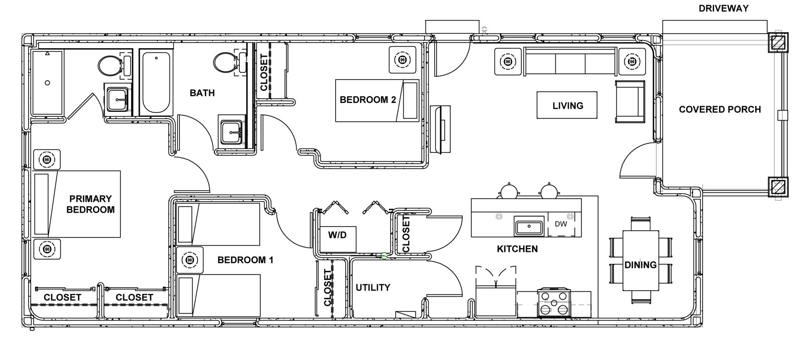 "Dove" (3 Bedroom / 2 Bath 1086 sf)